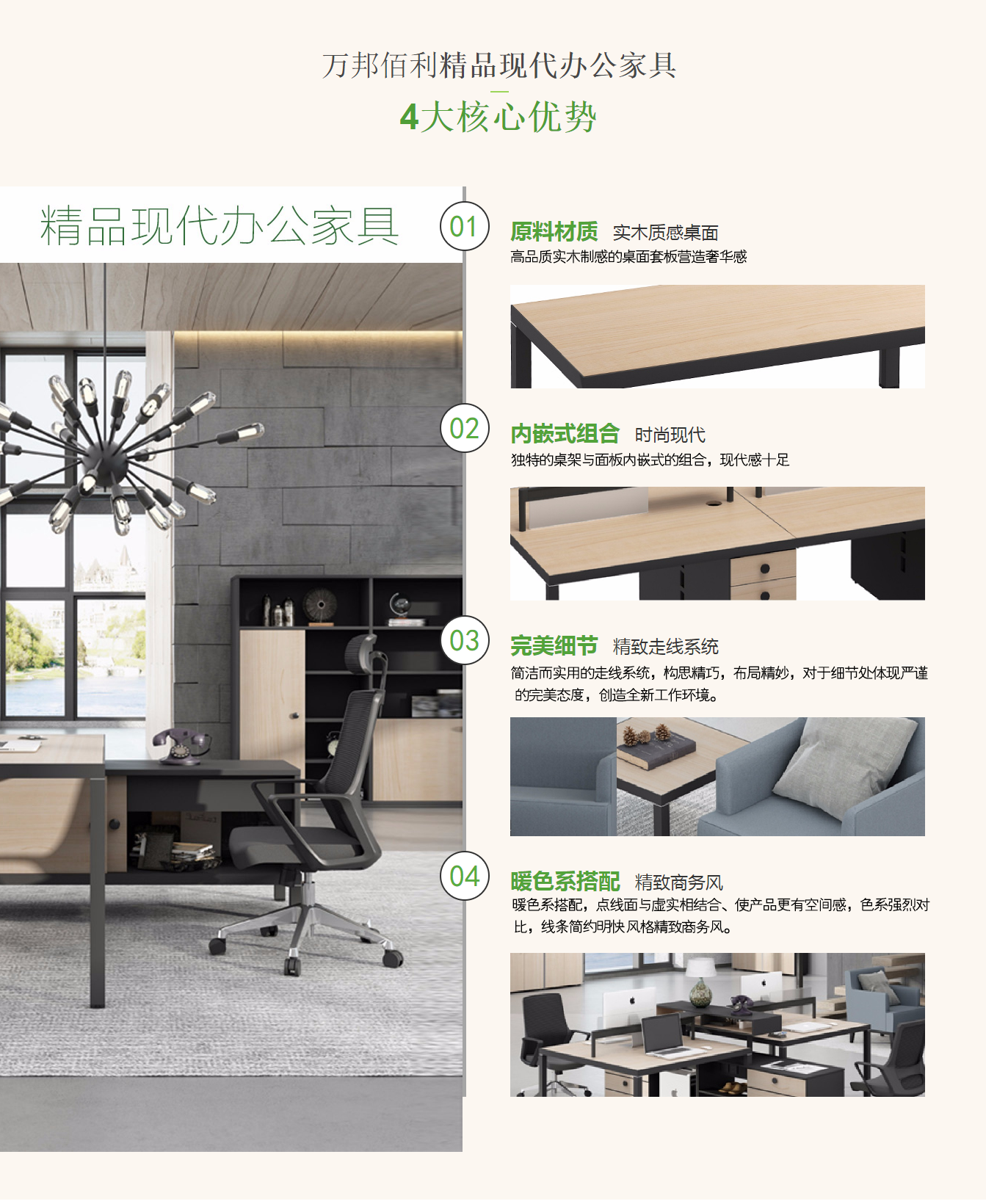 北京萬(wàn)邦佰利家具有限公司是一家專注于辦公家具生產(chǎn)、批發(fā)銷售的公司。銷售的產(chǎn)品有:班臺(tái)、經(jīng)理桌椅、會(huì)議桌椅、員工桌椅、文件柜、密集柜、視屏?xí)h桌、辦公沙發(fā)、學(xué)校家具、銀行家具、戶外家具、醫(yī)院家具等產(chǎn)品,公司自成立以來(lái)始終堅(jiān)持以人才為本、誠(chéng)信立業(yè)的經(jīng)營(yíng)原則,堅(jiān)持用企業(yè)文化提升企業(yè)核心競(jìng)爭(zhēng)力,使企業(yè)在發(fā)展中處于良好的形象.我公司主要服務(wù)于企業(yè)單位的家具定制服務(wù),為各大企業(yè)量身定做整體環(huán)境的家具設(shè)計(jì)全程服務(wù),我們的整體產(chǎn)品服務(wù)...